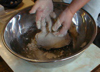 ![]() 練り終わった生地は乾燥させないこと。 袋に入れるか濡れタオルをかけておきましょう。 |