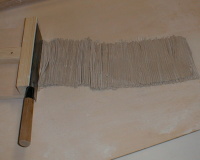 ![]() 切り終わったら器に取り出来るだけ早くゆでて食べましょう。 そばは、引きたて、打ちたて、茹でたて。 どうしても時間があく場合は乾かないように気をつけて。 |