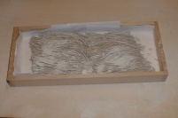 ![]() 水を廻します(出来れば井戸水) 水の量は360ccを目安に粉の状態で増減。 加えすぎないように気をつけて、最初は水分が行き渡るように混ぜるだけ。 全体がしっとりしてきたらまとめます。 |