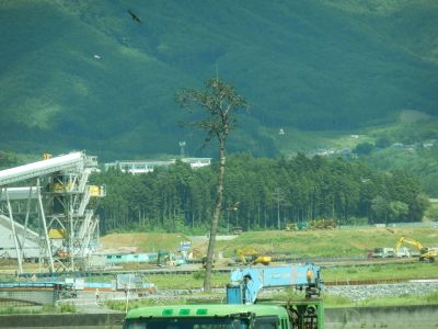 左上が奇跡の一本松です。 奇跡の松の立つ場所までは徒歩となる為、車窓からの視察でした。 語り部さんが手にする写真は震災前の高田松原と真っ白なビーチだそうです。 約7万本の松の木が茂り陸中海岸国立公園や日本百景にも指定されていた 景勝地であったそうです。 それが津波の直撃を受け、ほとんどの松の木がなぎ倒されて壊滅してしまいました。 しかし、一本の松の木が津波に耐えて、立ったままの状態で残ったことから、 「奇跡の一本松」・「希望の松」などと呼ばれるようになったそうです。 その奇跡の一本松は残念ながら枯れてしまい、現在はレプリカとして保存されています。 |
